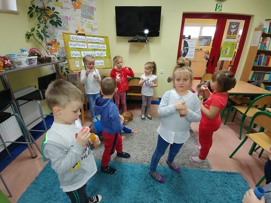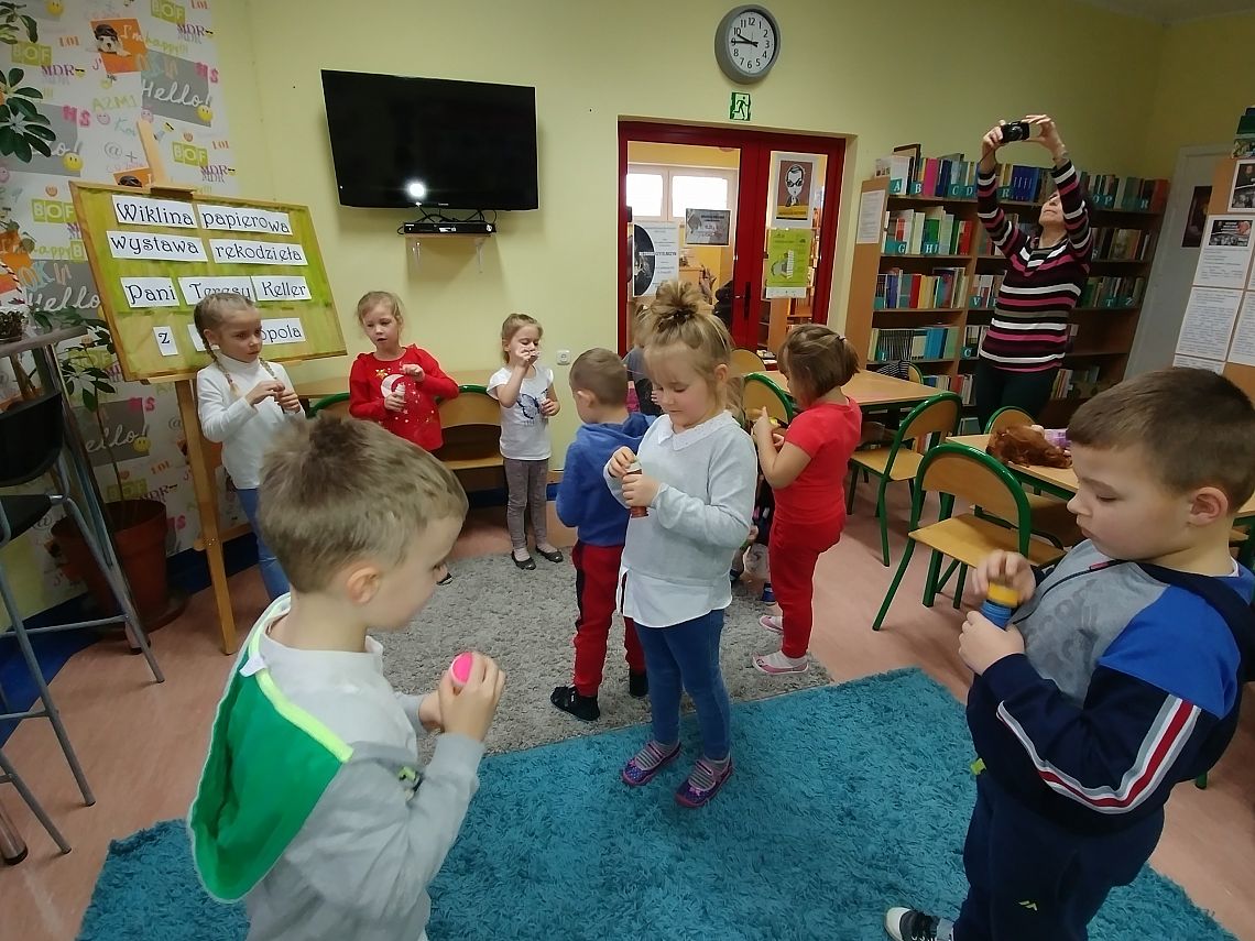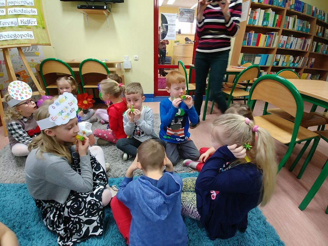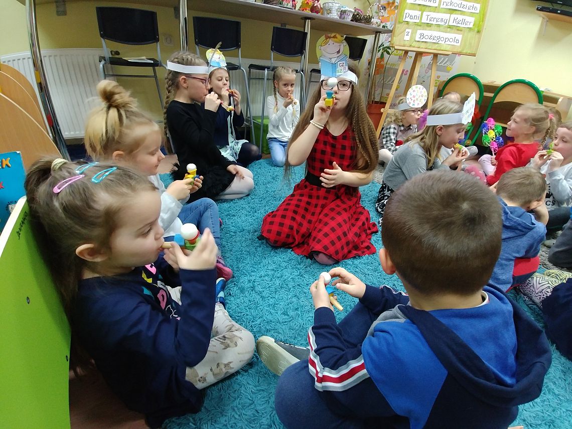 6 marca w bibliotece szkolnej odbyło się spotkanie z panią logopedą, która przygotowała dla dzieci różne ćwiczenia buzi, języka oraz ćwiczenia oddechowe. Rozmaite pomoce, z których korzystały w czasie zabaw logopedycznych sprawiły dzieciom wiele radości. Dzieci w podziękowaniu podarowały pani logopedzie słodki upominek. Jeszcze raz bardzo dziękujemy za spotkanie i życzymy Pani wiele sukcesów w pracy :)