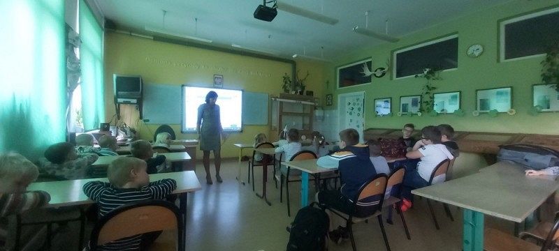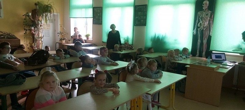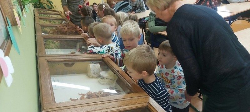 Dziś dzieci z grupy przedszkolnej 0E odwiedziły szkołę, gdzie Pani ucząca biologii Wioleta Piankowska opowiadała o przygotowaniach roślin i zwierząt do zimy. Obejrzeliśmy filmy o zwierzętach oraz wystawę liści i owoców polskich drzew.