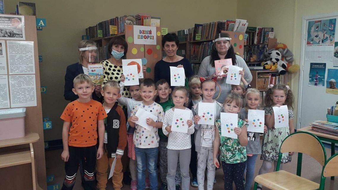 15 WRZEŚNIA OBCHODZILIŚMY W NASZEJ GRUPIE DZIEŃ KROPKI. BO BIBLIOTEKI NA CIEKAWE ZAJĘCIA CZYTELNICZE I PLASTYCZNE ZAPROSIŁY NAS PANIE B. KONDRATKO, A. LASKOWSKA I A. DAMASZKE. DZIECI MIAŁY OKAZJĘ POZNAĆ ZWIERZĘTA W KROPKI ORAZ POSŁUCHAĆ OPOWIADANIA O SYMPATYCZNEJ BIEDRONCE. PODCZAS ZAJĘĆ CZYTALIŚMY HISTORIĘ DZIEWCZYNKI ...BOHATERKI KSIĄŻKI PT. " KROPKA" , WYKONYWALIŚMY W ZESPOŁACH PRACE PLASTYCZNE Z RÓŻNOKOLOROWYCH KROPEK ORAZ ZAJĘLIŚMY SIĘ KROPKOWĄ GIMNASTYKĄ . DZIEŃ BYŁ PEŁEN NIESPODZIANEK I WSPANIAŁEJ ZABAWY. ALE NAJWAŻNIEJSZE BYŁO TO, ŻE DZIECI NAUCZYŁY SIĘ , IŻ ZAWSZE NALEŻY WIERZYĆ WE WŁASNE SIŁY I NIGDY NIE REZYGNOWAĆ ...NAWET GDY NA POCZĄTKU ZADANIE WYDAJE SIĘ NIEMOŻLIWE DO REALIZACJI.