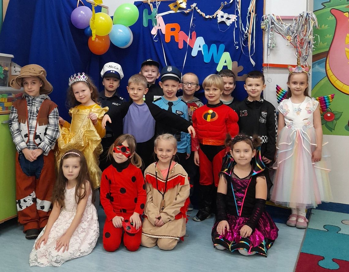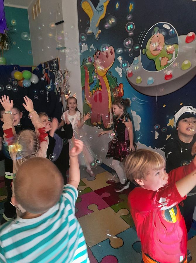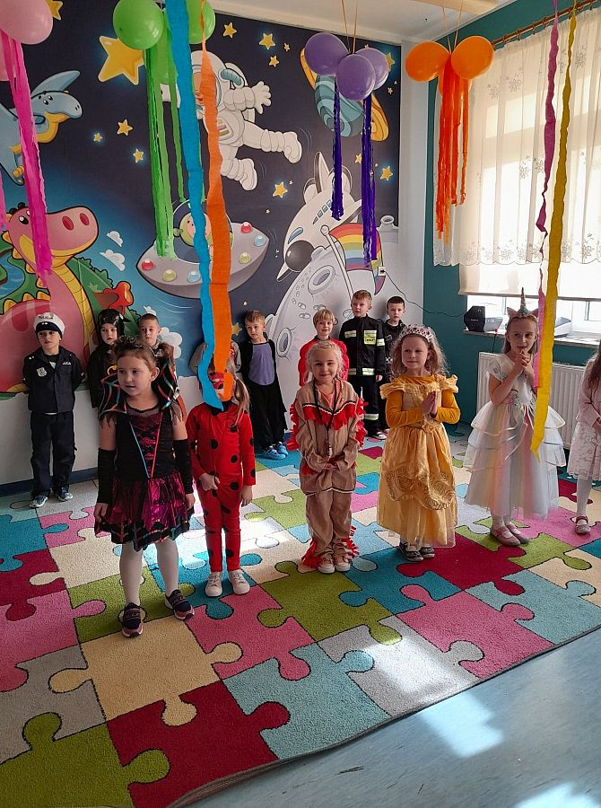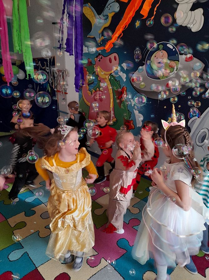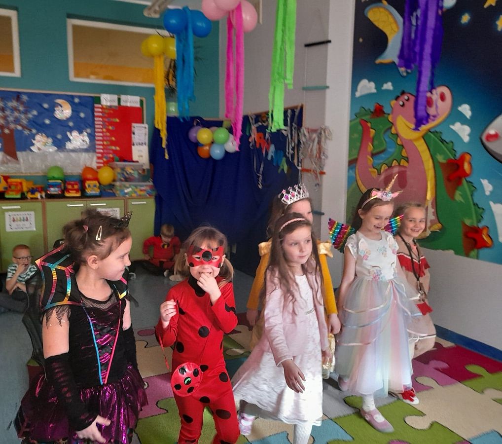 11 lutego bawiliśmy się na balu karnawałowym. Ze względu na pandemię spotkaliśmy się tylko we własnej grupie, ale i tak bawiliśmy się wspaniale. Były tańce, zabawy, konkursy i bańkowe atrakcje. Oczywiście wybraliśmy Króla i Królową balu. Dziękujemy mamom za przygotowanie słodkiego poczęstunku .