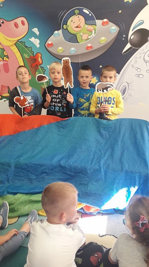 Dziś rozmawialiśmy o przygotowaniach zwierząt do zimy. Dzieci wcieliły się w rolę Wiewiórki Basi, Borsuka Kamila, Jeża Jacka i Niedźwiedzia Bartka i w grupach przygotowały teatrzyk dla swoich kolegów . Mali aktorzy zasłużyli na brawa !!!
