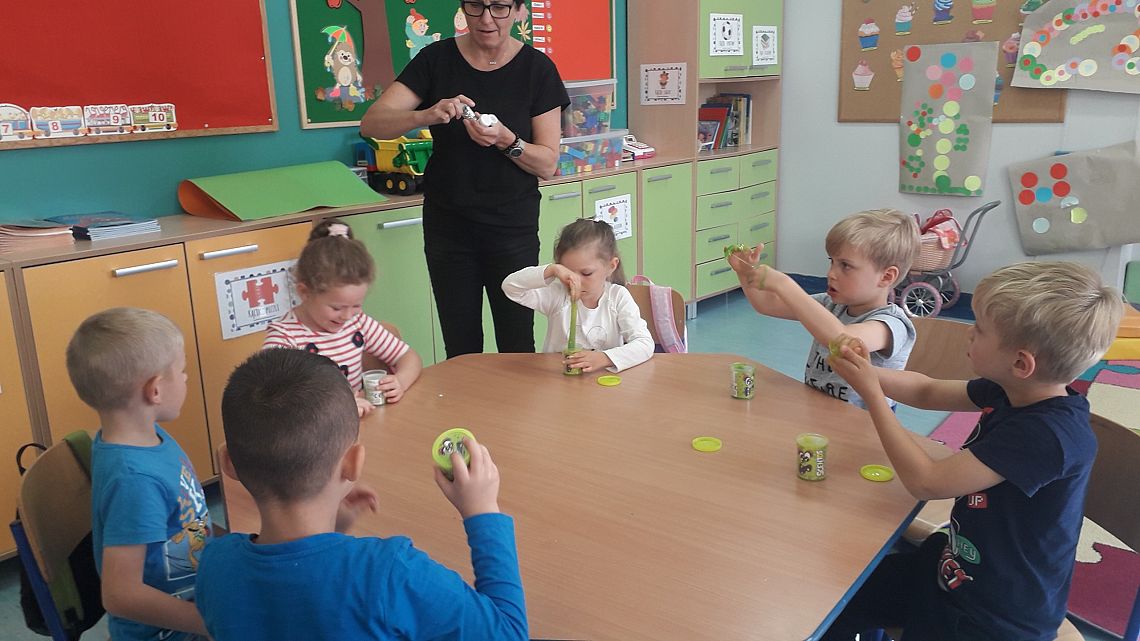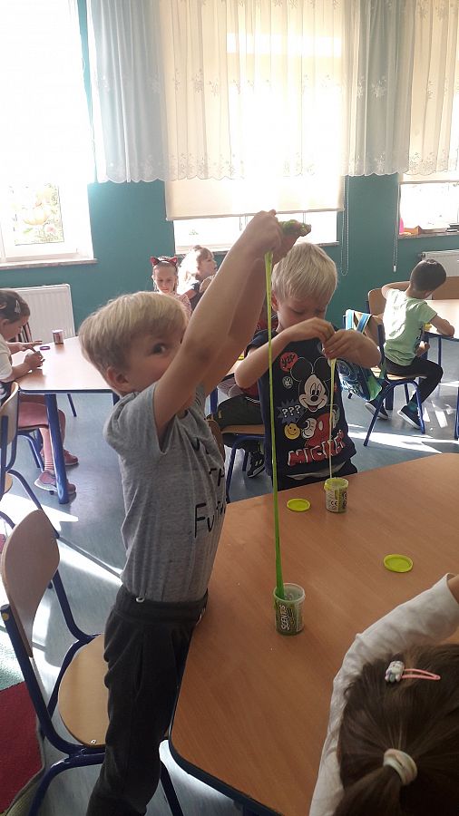21 września obchodziliśmy w naszej grupie Dzień Przedszkolaka. Tego dnia trochę porządziły dzieci...spełnialiśmy ich prośby. Naukę zastąpiliśmy zabawą i niespodziankami dla milusińskich. Już rano na dzieci czekały prezenty ... wózek dla lalek i gry. Dzieci robiły brokatowe slimy, bawiły się w ulubione zabawy ruchowe i wykonywały pamiątkowe medale z okazji Dnia Przedszkolaka. Było naprawdę SUPER