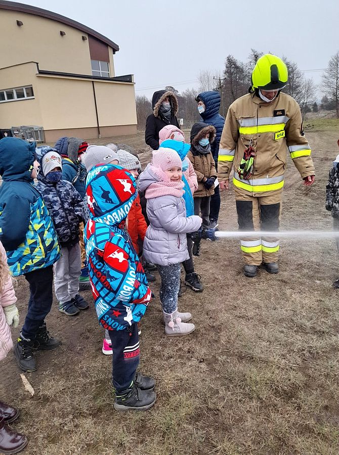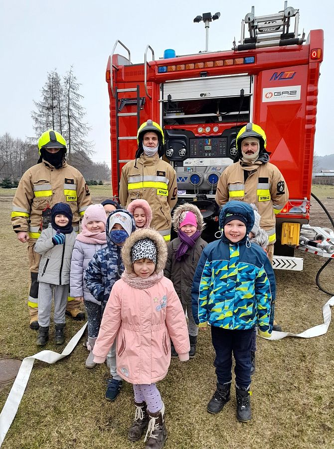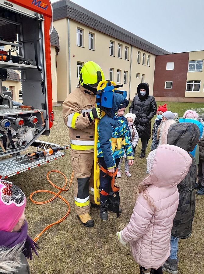 W ramach realizacji zadań Ogólnopolskiego Projektu Magiczna Moc Bajek dzieci rozmawiały na temat czym jest odwaga i spotkały się ze strażakami, którzy są swoją odwagą i pomocą służą mieszkańcom naszej gminy. Panowie opowiadali o swojej pracy, a dzieci miały okazję poznać sprzęt strażacki i poczuć się małymi bohaterami