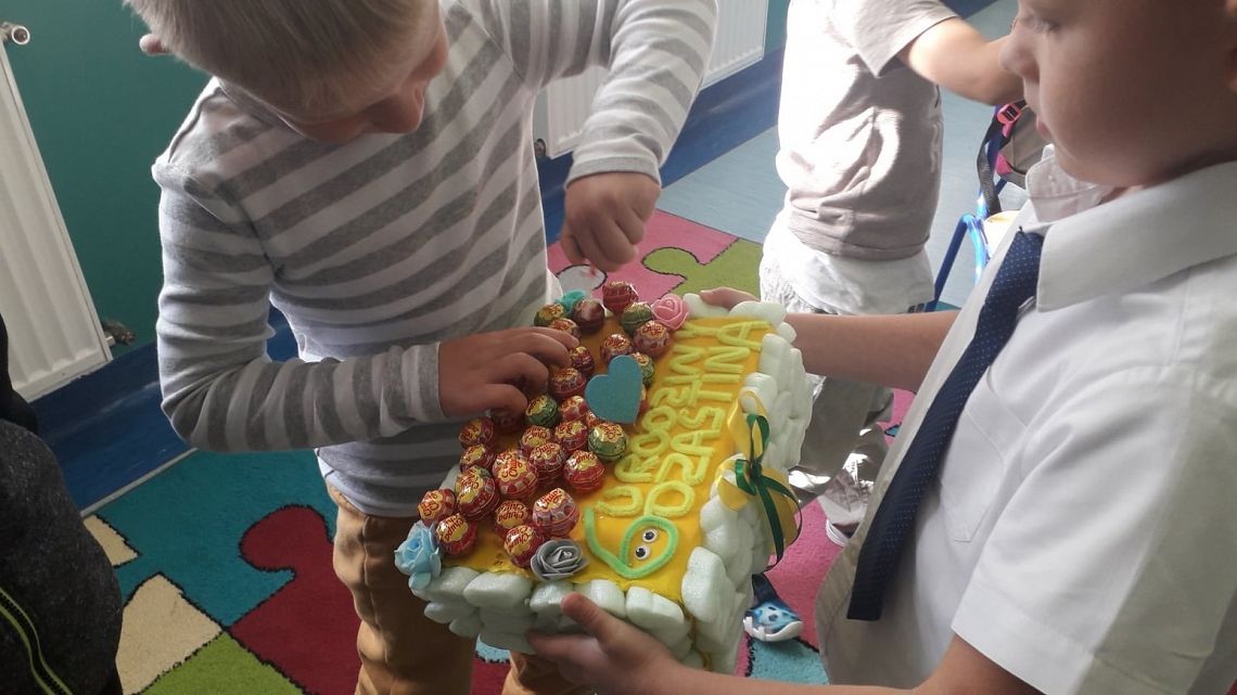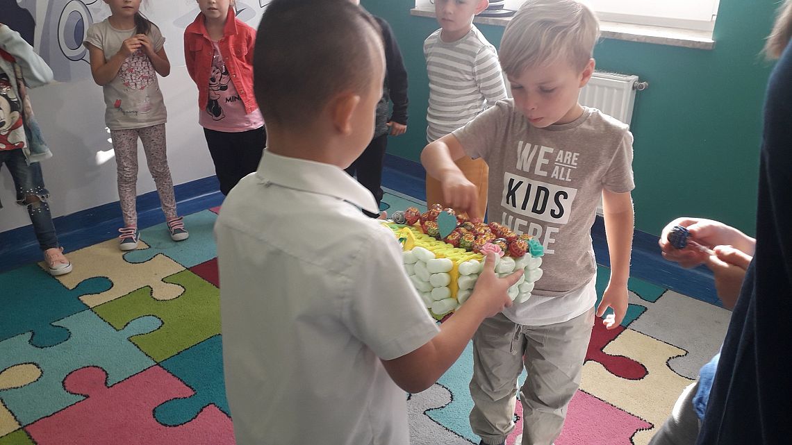 W dniu 22 września świętowaliśmy URODZINY DŻASTINA ... były prezenty ( kolega dostał od pań ulubionego Transformera), życzenia i oczywiście wspólnie odśpiewane 100 lat, 100 lat , a Dżastin zrobił wszystkim piękną słodką niespodziankę... wspaniały lizakowy tort . To był wesoły dzień dla wszystkich. mamy nadzieję, że życzenia, które składały mu dzieci i panie spełnią się w 100%.