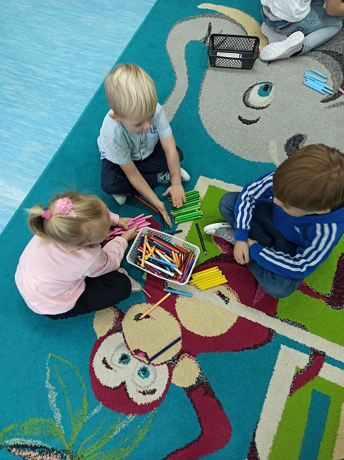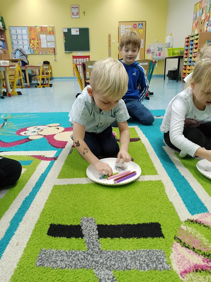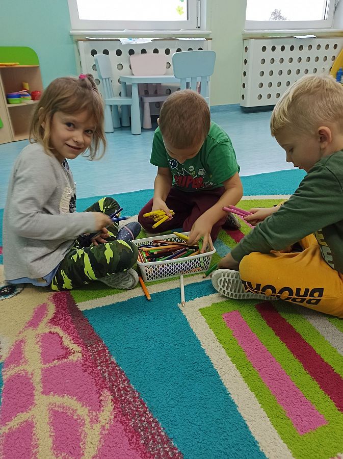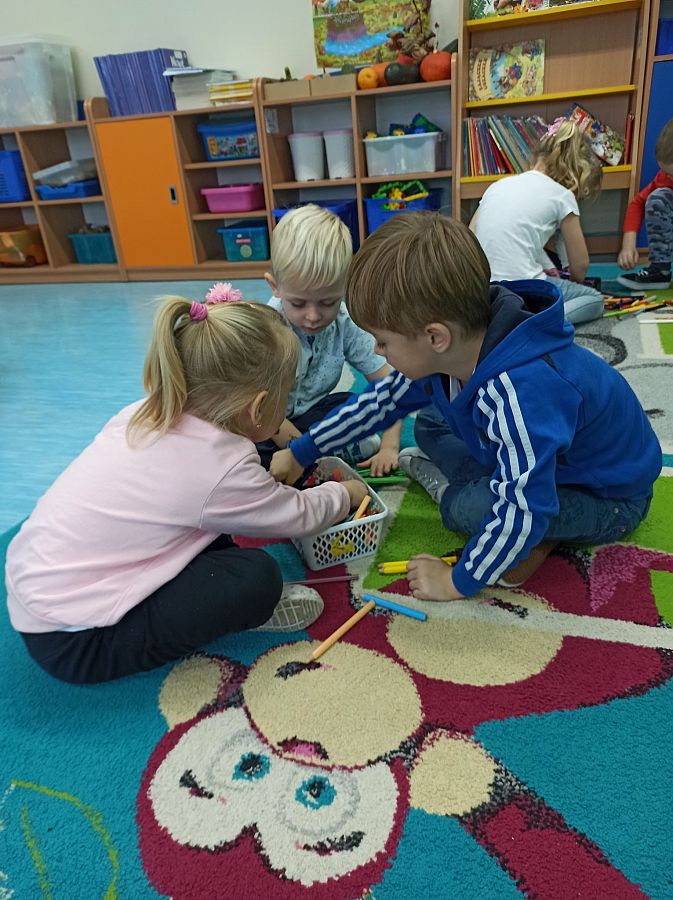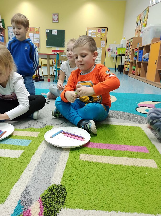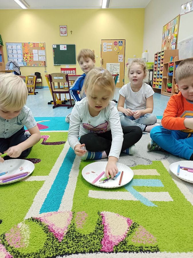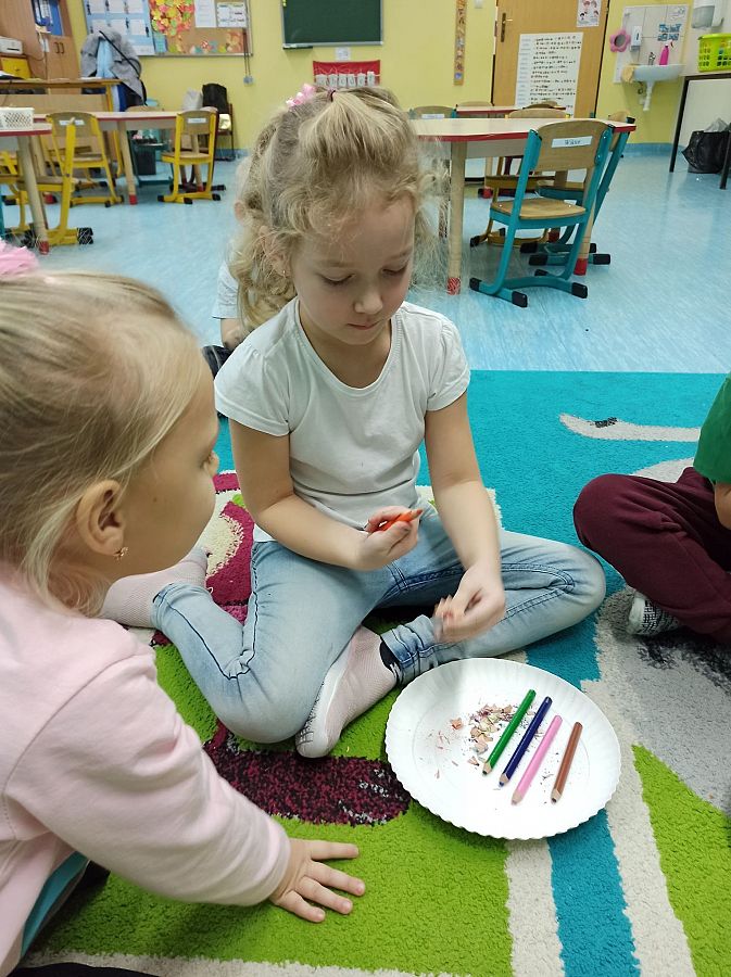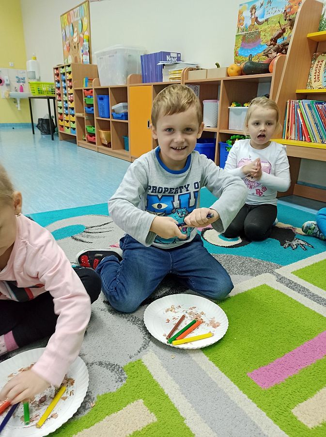 23 listopada starszaki z grupy 0 C zamieniły szary, listopadowy dzień w kolorowy. Tego dnia świętowały Dzień Kredki. Celem zabaw było zapoznanie i utrwalenie kolorów, integracja grupy, kształcenie sprawności manualnych, doskonalenie umiejętności liczenia oraz reakcji na sygnał dźwiękowy. Dzieci segregowały kredki kolorami, przeliczały, układały z nich figury geometryczne, ozdabiały ogromne kredki. Wzięły udział w zawodach w ostrzeniu kredek na czas. Tego dnia było kolorowo, wesoło i tęczowo.