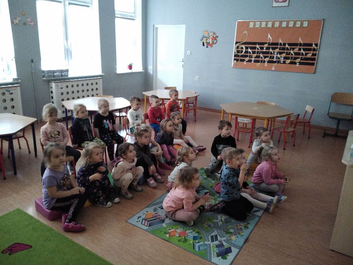 Obejrzeliśmy krótki film dokumentalny o dinozaurach zadedykowany specjalnie dla Naszej grupy ,,Nutki".