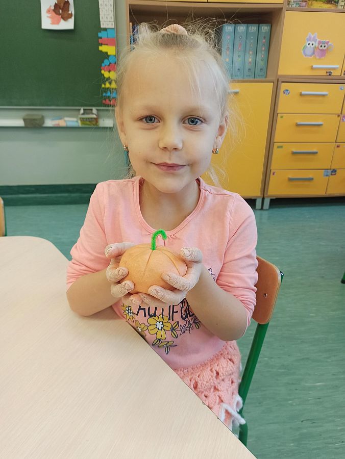 29 października grupa sześciolatków obchodziła w przedszkolu ,,Dzień Dyni". Dzieci poznały wielką różnorodność dyń i wzbogaciły wiedzę na ich temat. Przedszkolaki wzięły udział w różnych ,,dyniowych" zabawach i same ulepiły własne dynie z masy solnej. Powstały piękne prace. Ten dzień przyniósł wiele niezapomnianych wrażeń, odkrywania i zabawy co widać na zdjęciach poniżej.