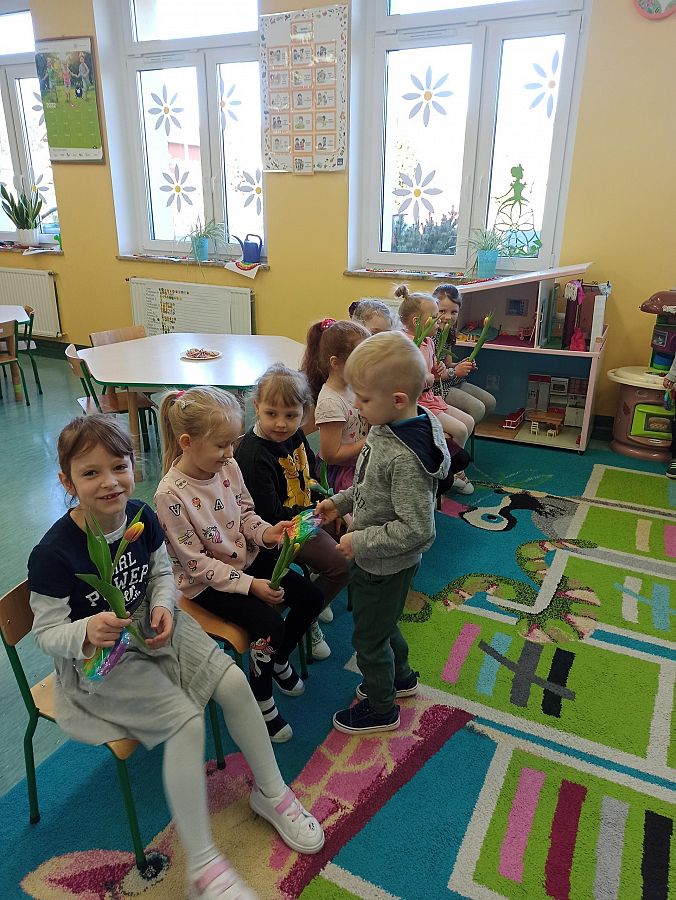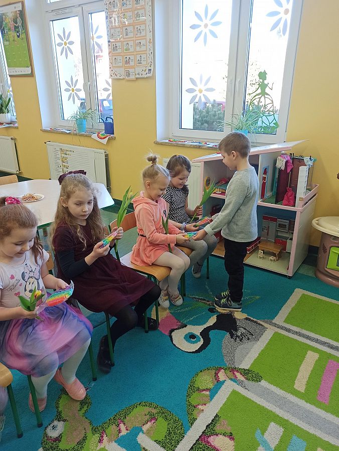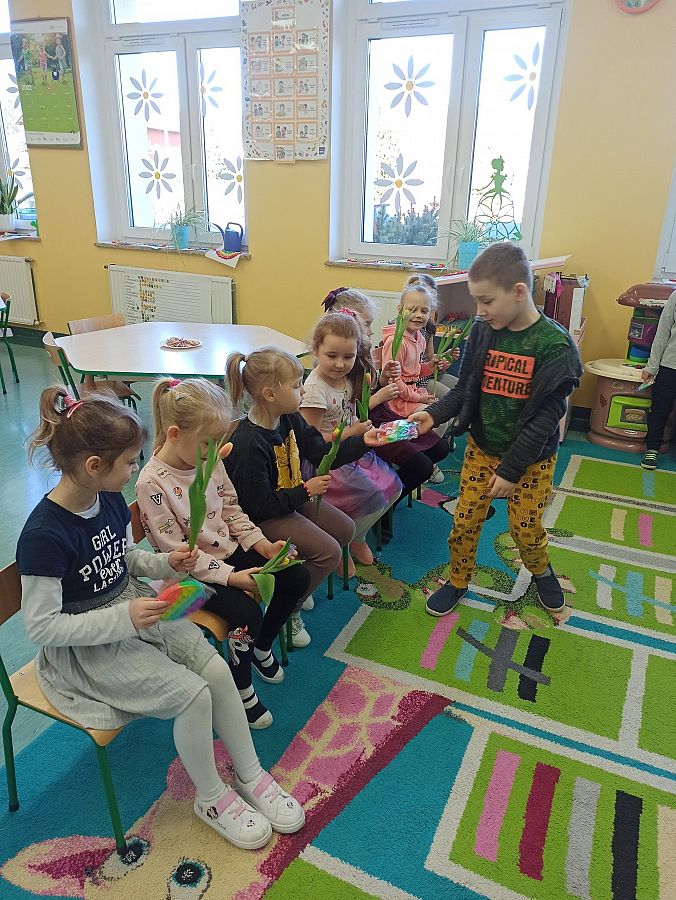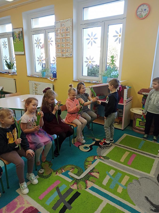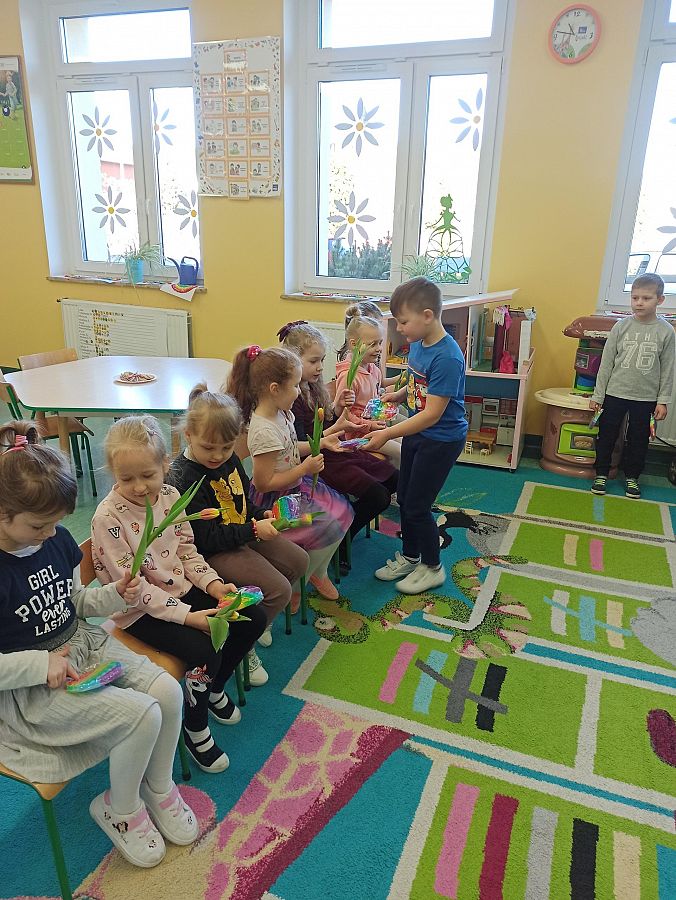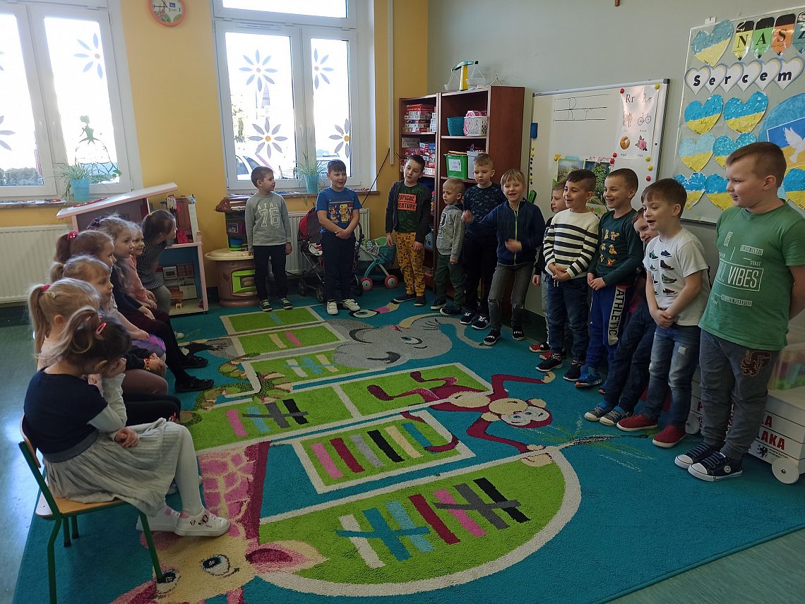 ,,Nasze Koleżanki – Damy zawsze pięknie pozdrawiamy, w drzwiach je przepuszczamy, o swą grzeczność dbamy… Bez przerwy je czcimy! I teczkę nosimy… No – bo je lubimy!"
