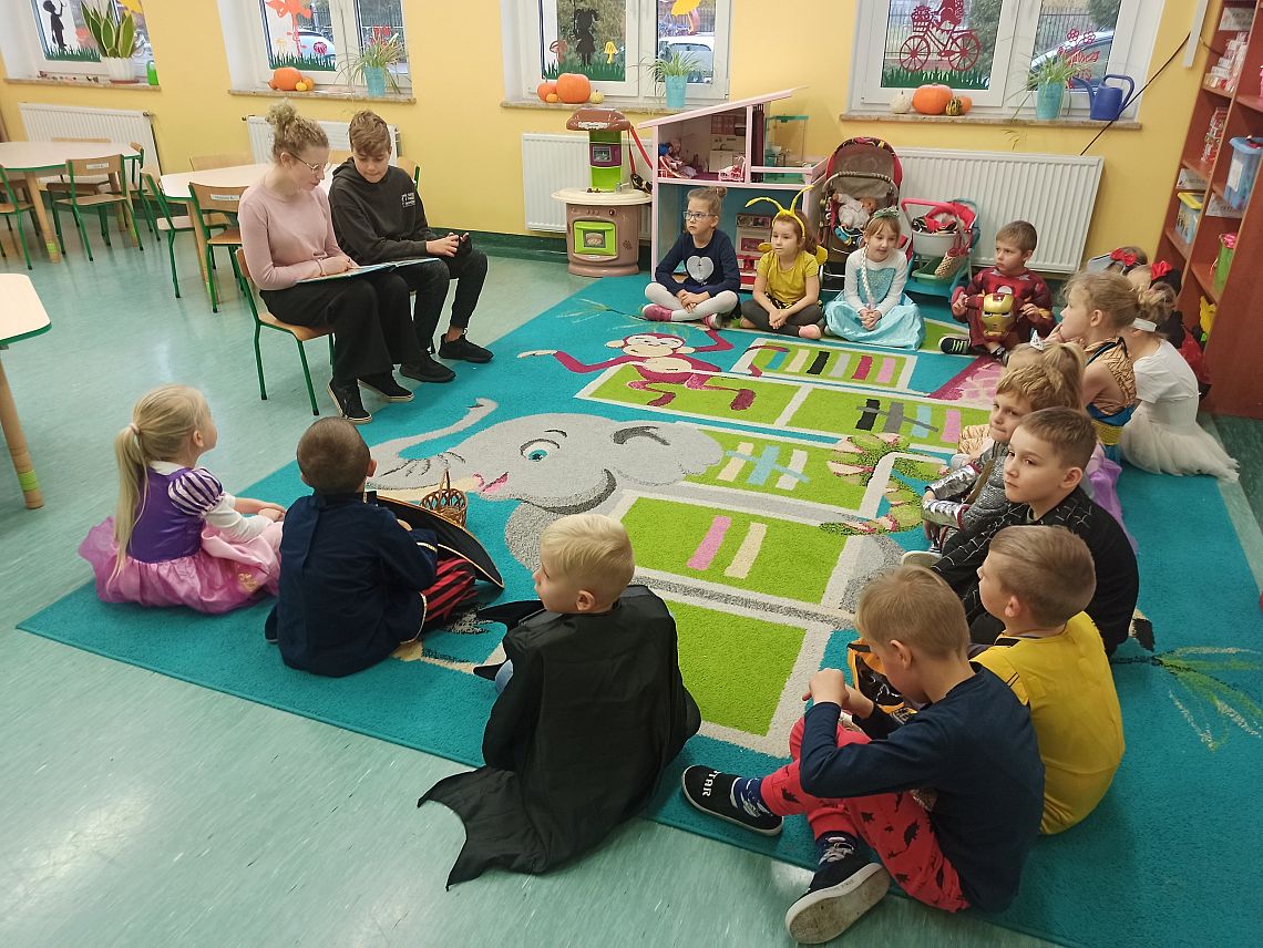 ,,Chcę dziś spotkać kota w butach Lub Kopciuszka bucik znaleźć Chce zamieszkać w cudnej bajce Zamków wielkich zwiedzać sale Krasnoludka śliczną czapkę Chce na głowę włożyć brata W telewizor razem wskoczyć Wprost do bajkowego świata"