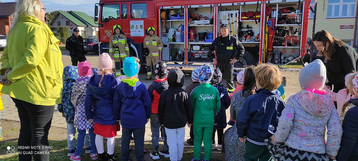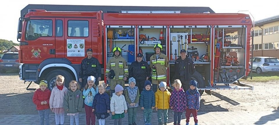 Dnia 30.09.2021 nasze Przedszkole odwiedzili strażacy. W trakcie spotkania przybliżyli dzieciom, na czym polega ich praca oraz jakim sprzętem ratowniczym się posługują. Dzieci dowiedziały się, że ich działania nie polegają tylko na gaszeniu pożarów, ale również na udzielaniu pomocy ludziom podczas powodzi, burz, wypadków samochodowych...