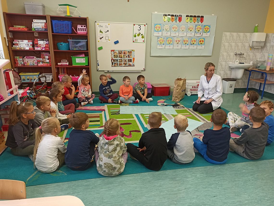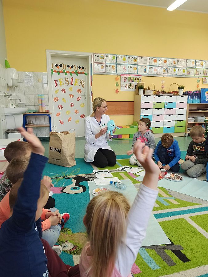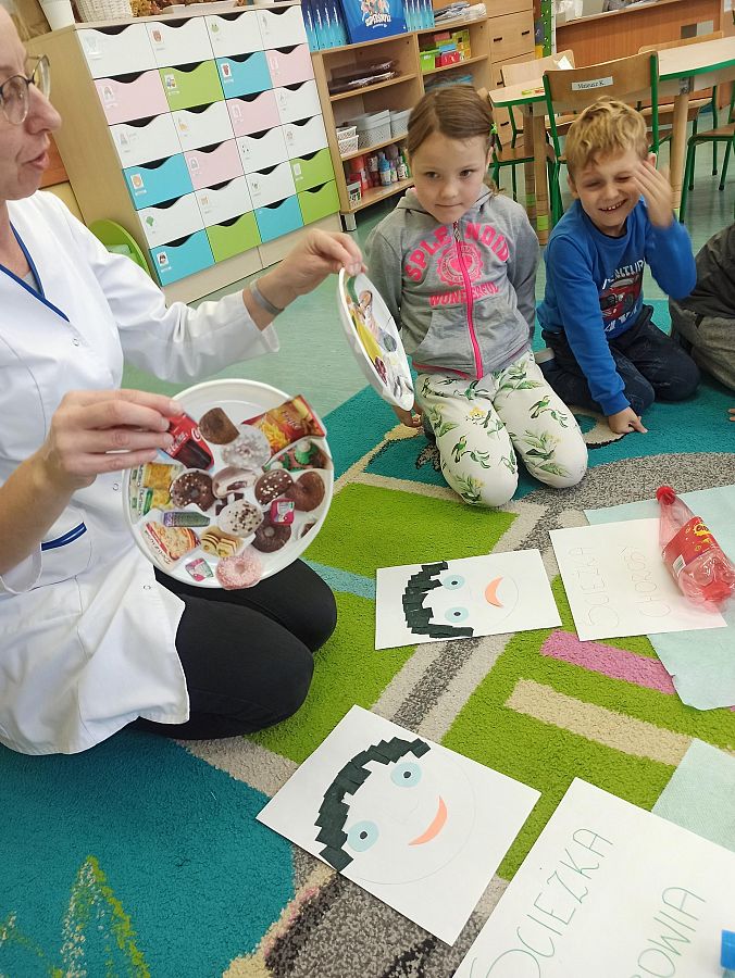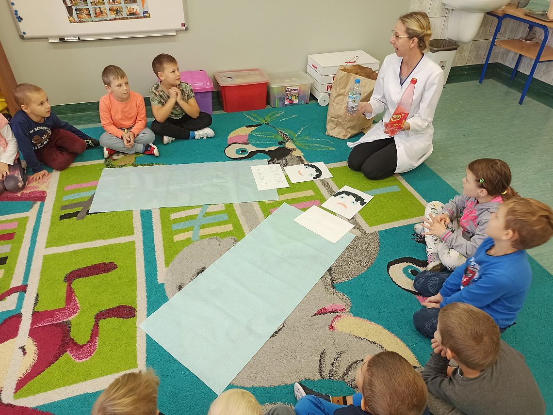Dzisiaj 20.10. do grupy 0A zawitał ważny gość. Była to Pani Justyna, pielęgniarka, która przeprowadziła z dziećmi zajęcia na temat zdrowego trybu życia. Przybliżyła uczniom co ma dobry wpływ na nasz organizm, a co mu szkodzi. Dzieci dowiedziały się jakich produktów należy unikać, aby być zdrowym oraz jak zadbać o odporność. Dziękujemy za odwiedziny i przekazanie cennych wskazówek :)