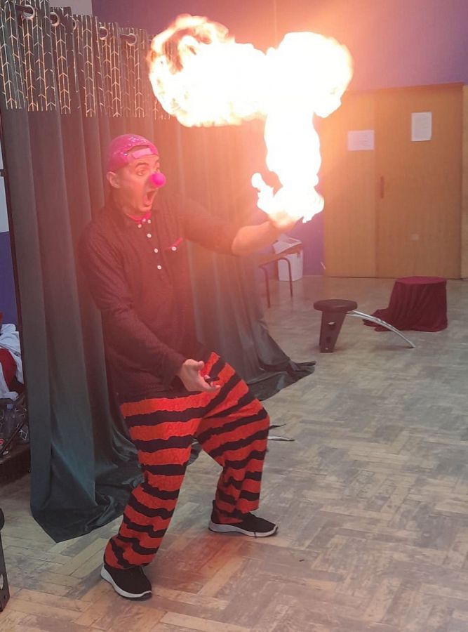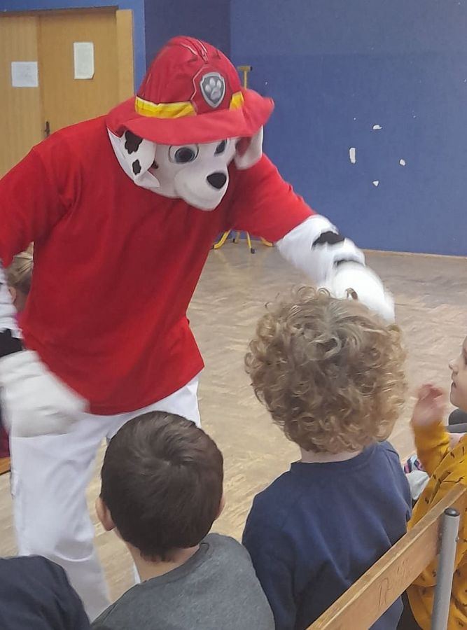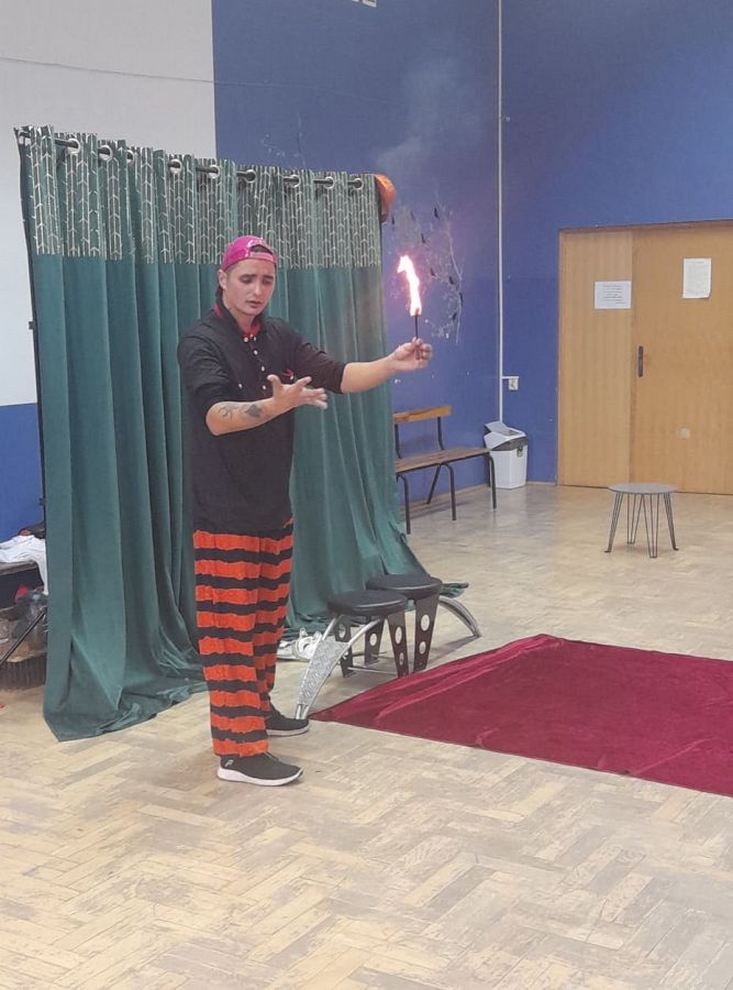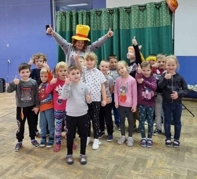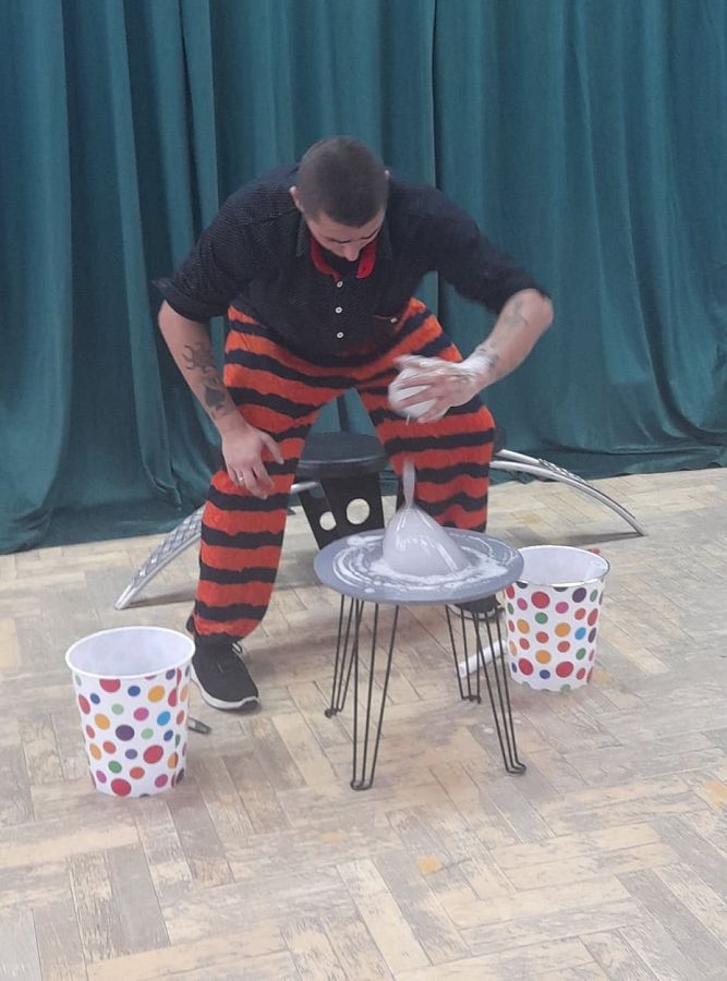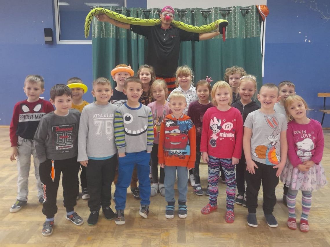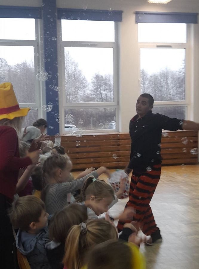 Dziś w naszym przedszkolu gościł artysta cyrkowy. Przygotował dla dzieci wspaniałą zabawę . Był pokaz jazdy na rowerze ( a właściwie mini rowerku), niezwykłe bańki mydlane , pokazy fakira i pokaz ognia. Dzieci poznały też wesołego dinozaura i bohatera ulubionej bajki Psi Patrol. Do wspólnej zabawy zaproszono również panie ...oj miały dzieci radochę !!!