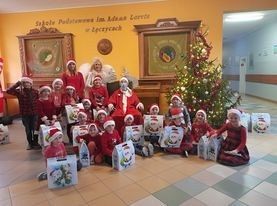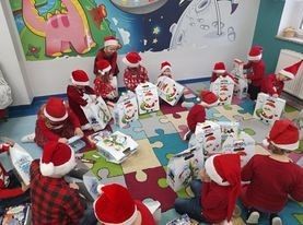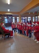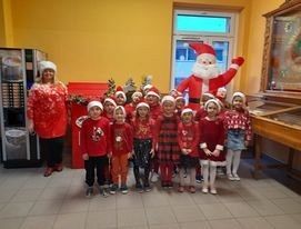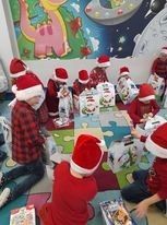 Dziś 6 grudnia, więc do przedszkola zawitał ukochany przez dzieci św. Mikołaj. Razem z nim pojawił się Anioł i pomocnicy. Dzieci przywitały gości piosenką i bardzo były ciekawe czy święty o nich pamiętał. Chyba były grzeczne , bo wszyscy otrzymali piękne prezenty. A Anioł - nasza pani dyrektor - obdarował milusińskich słodkościami.
