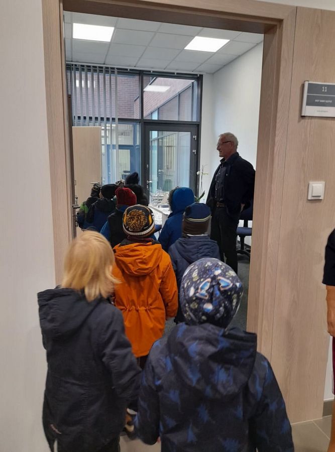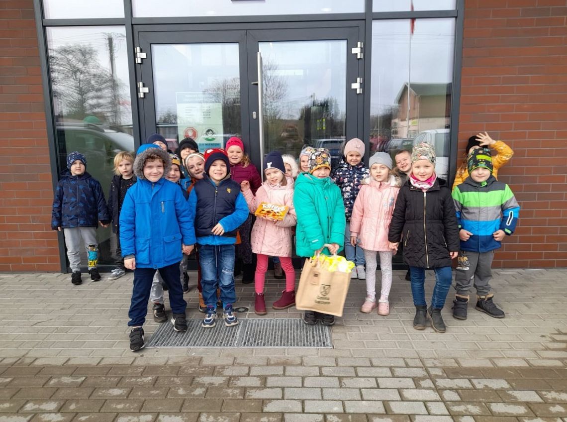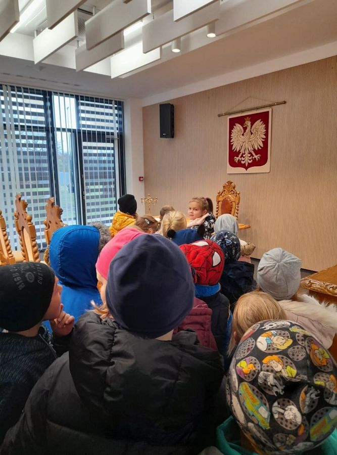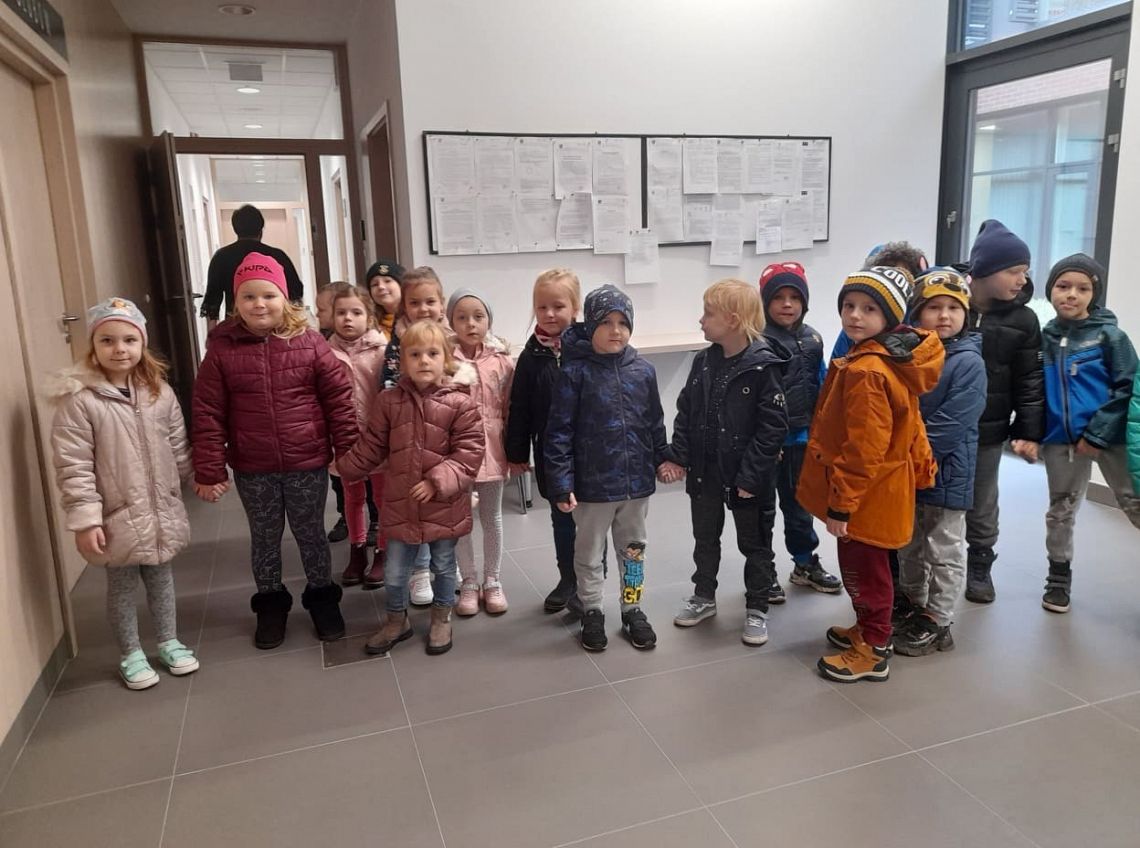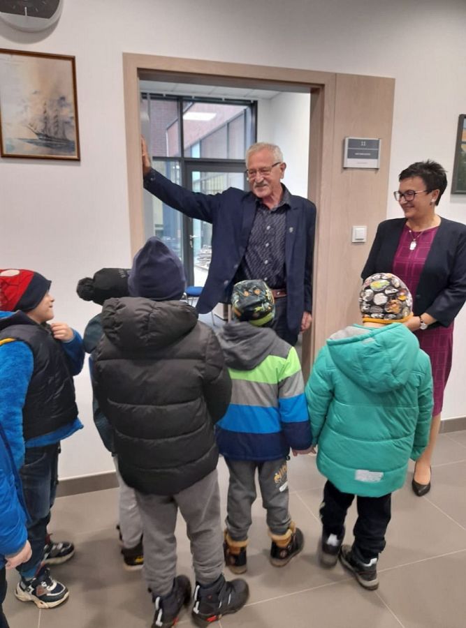 W ramach realizacji tematu Nasz Mała Ojczyzna grupa 0B poznawała ważne miejsca w Łęczycach. Trafiliśmy więc do Urzędu Gminy i odwiedziliśmy nasze władze. Spotkaliśmy się z panem Wójtem P. Wittbrodtem i panią Wójt B. Pruchniewską. Pan wójt opowiadał nam o swojej pracy, a nasz osobisty przewodnik p. Ilona Piotrowska oprowadziła dzieci i pokazała nowy budynek Urzędu. Mieliśmy też okazję poznać kilku pracowników, którzy przyjęli naszą dość głośną gromadkę bardzo ciepło i serdecznie. Po naszym spotkaniu połowa dzieci chciała w przyszłości zostać wójtem, a innym podobała się praca w urzędzie. Na zakończenie spotkania wszystkie dzieci otrzymały prezenty ... odblaskowe kamizelki i artykuły papiernicze. Bardzo dziękujemy za miłą rozmowę i spotkanie p. Wójtowi, a p. Ilonie za bycie naszym przemiłym przewodnikiem.