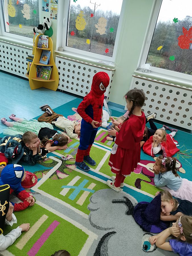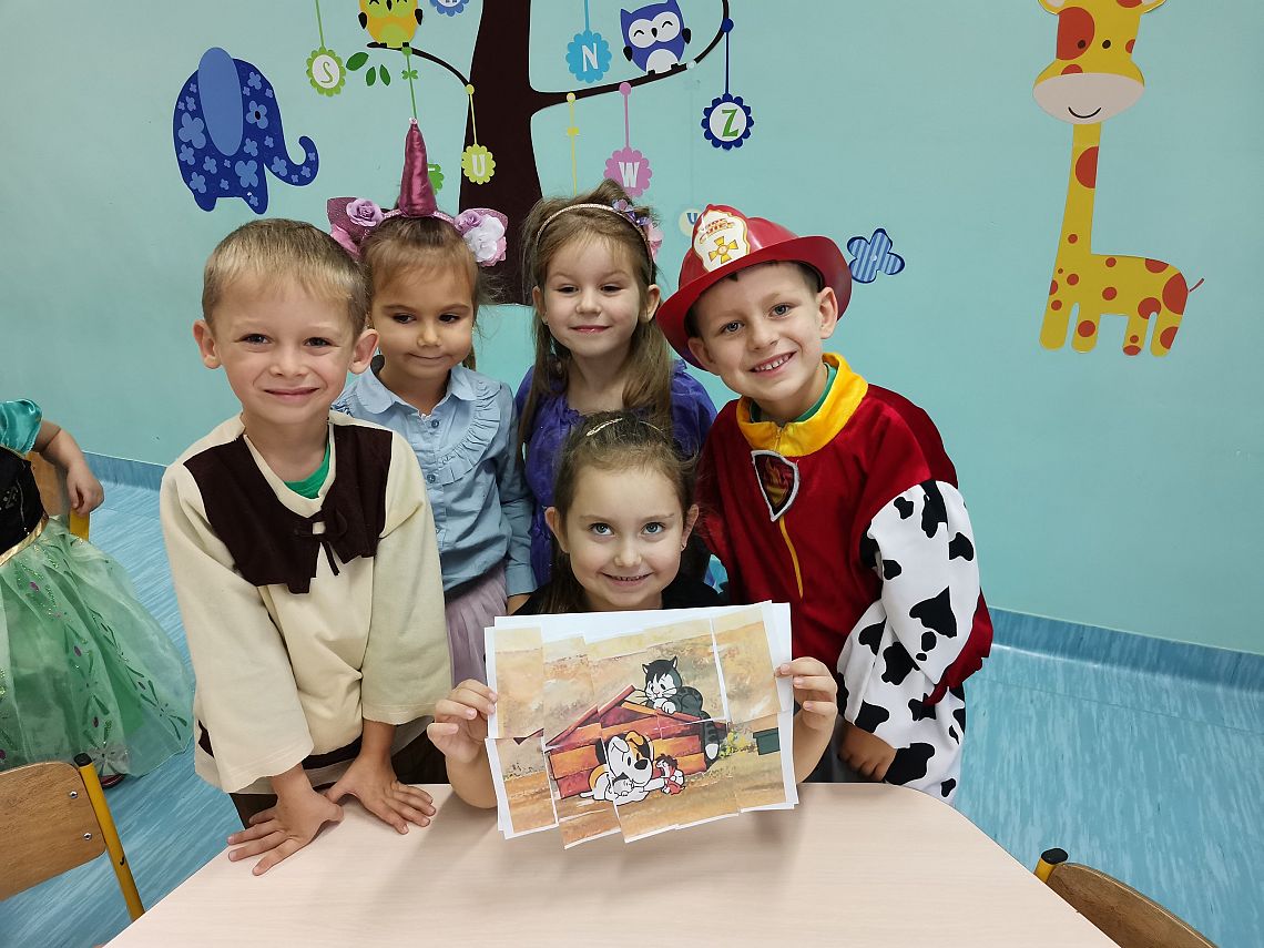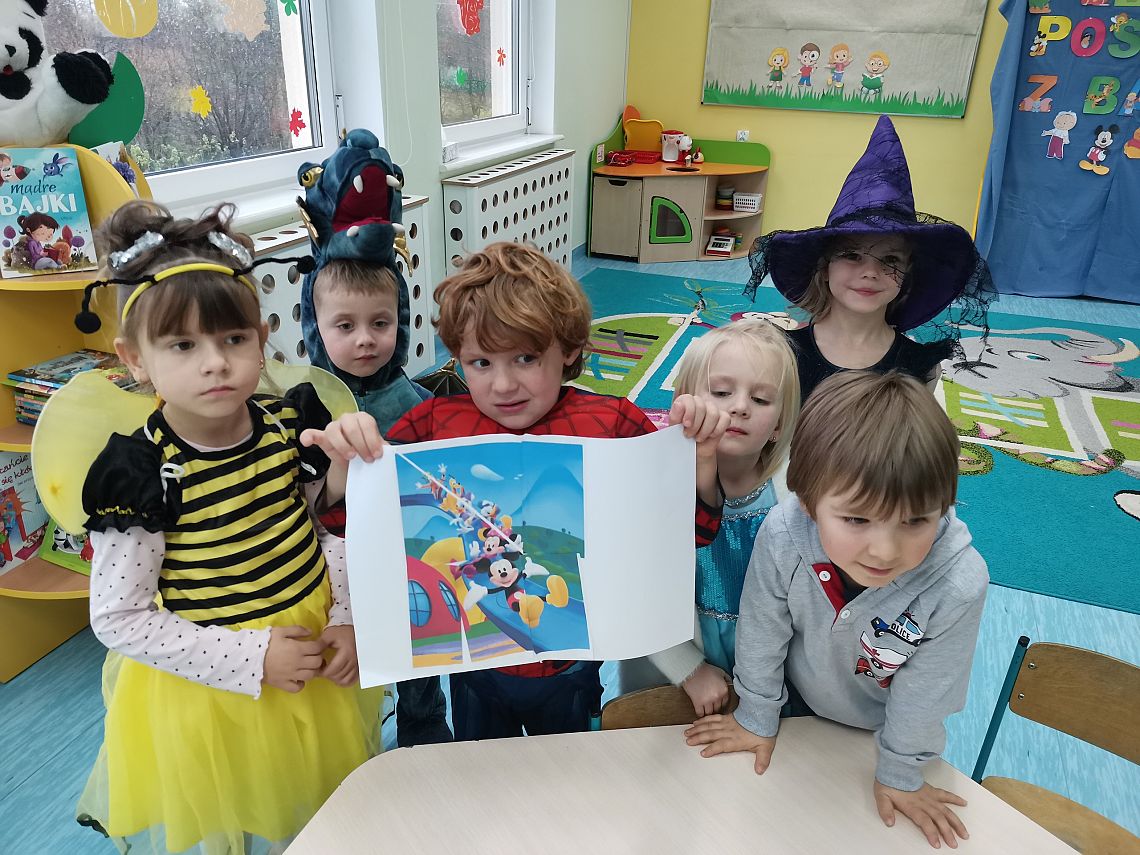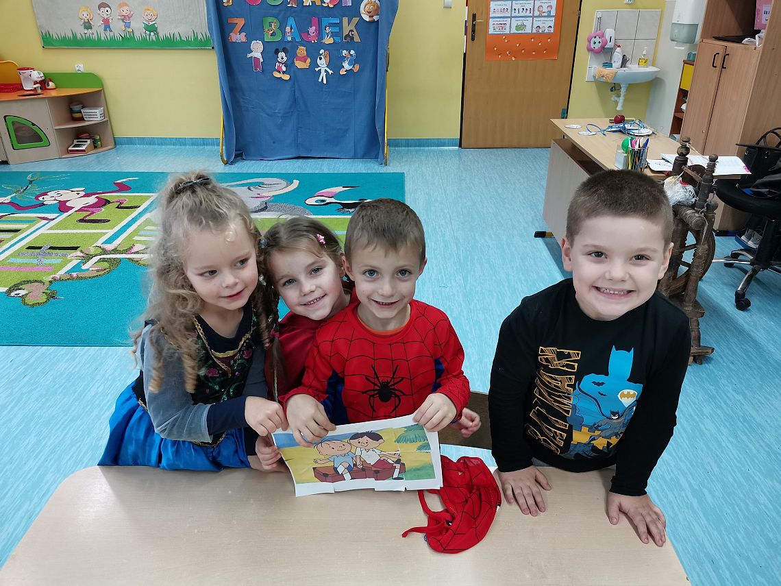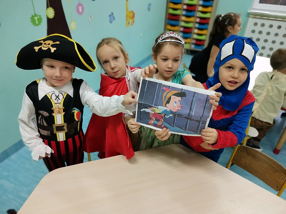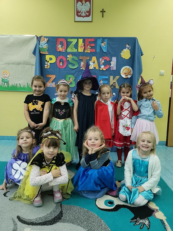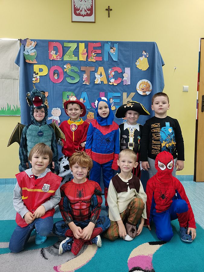 W ubiegły piątek w naszej grupie świętowaliśmy Dzień Postaci z Bajek. Cała grupa przedstawiła swoich ulubionych bohaterów bajek świetnie się przy tym bawiąc